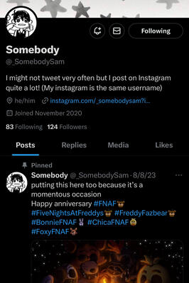 This is where I am most active! I post art here every so often, usually of (if not always) Five Nights at Freddy's. This is the best place to find me.